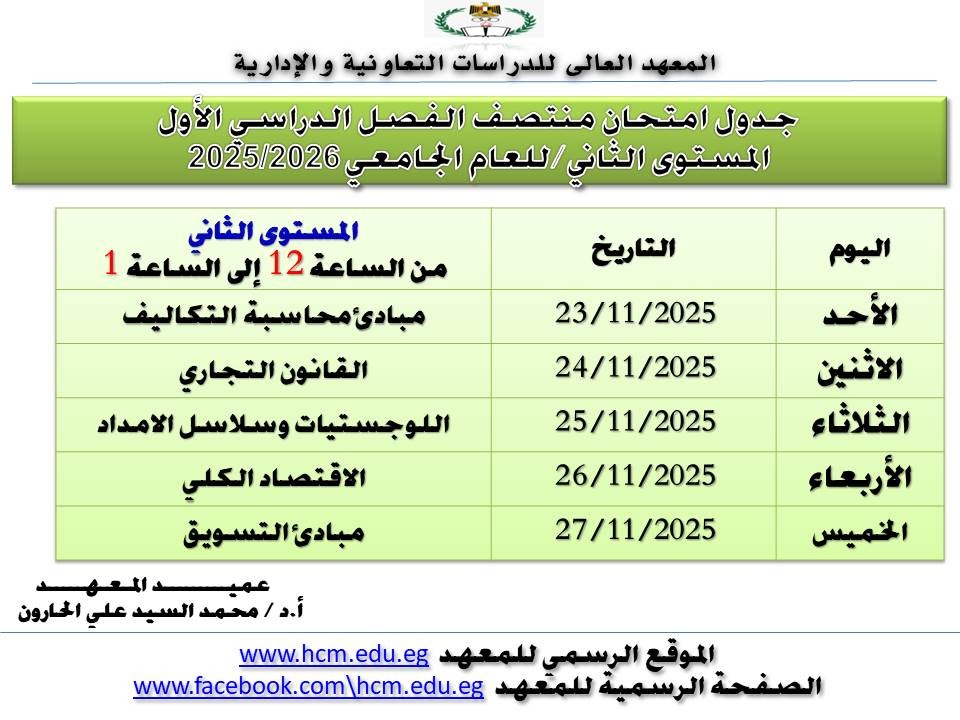 جدول امتحان منتصف الفصل الدراسي الأول الثاني للعام الجامعي 2025/2026 |