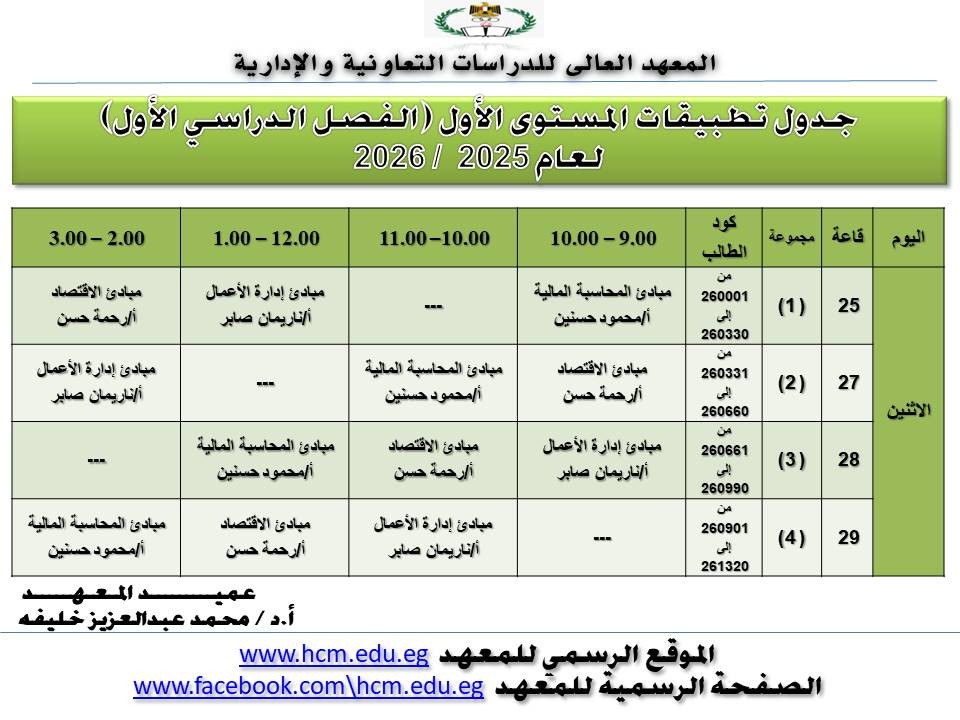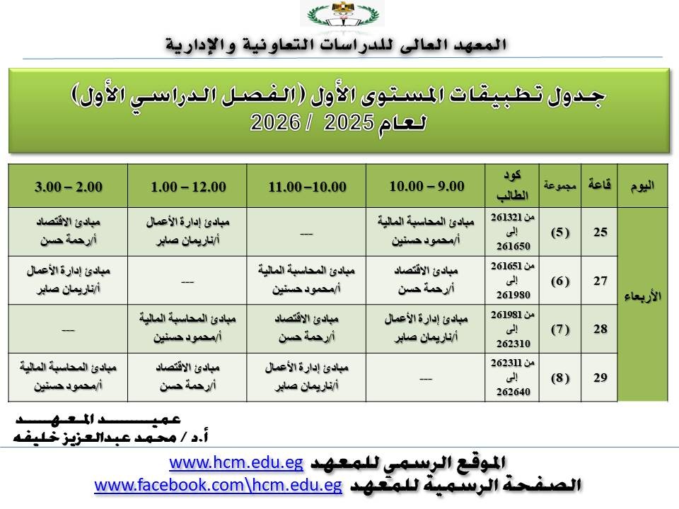 جدول تطبيقات المستوى الأول للعام الدراسى 2026/2025 |