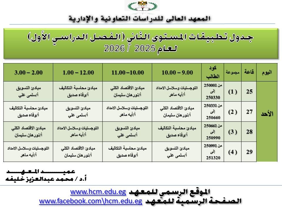 جدول تطبيقات المستوى الثانى للعام الدراسى 2026/2025 |