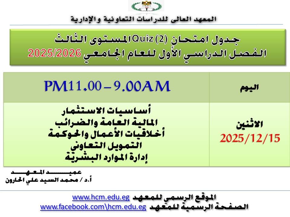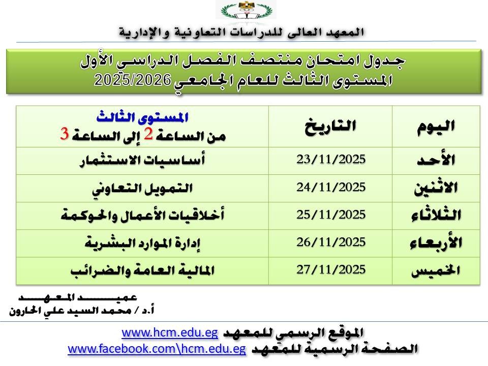 جدول امتحان منتصف الفصل الدراسي الأول المستوى الثالث للعام الجامعي 2025/2026 |