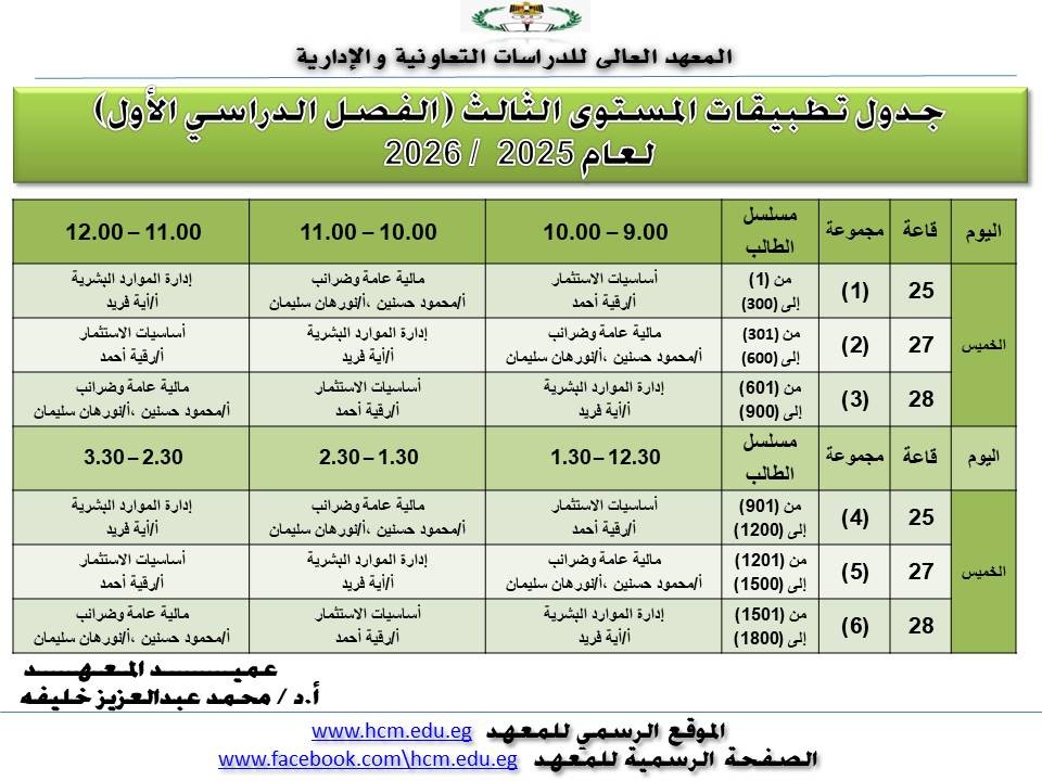 جدول تطبيقات المستوى الثالث للعام الدراسى 2026/2025 |